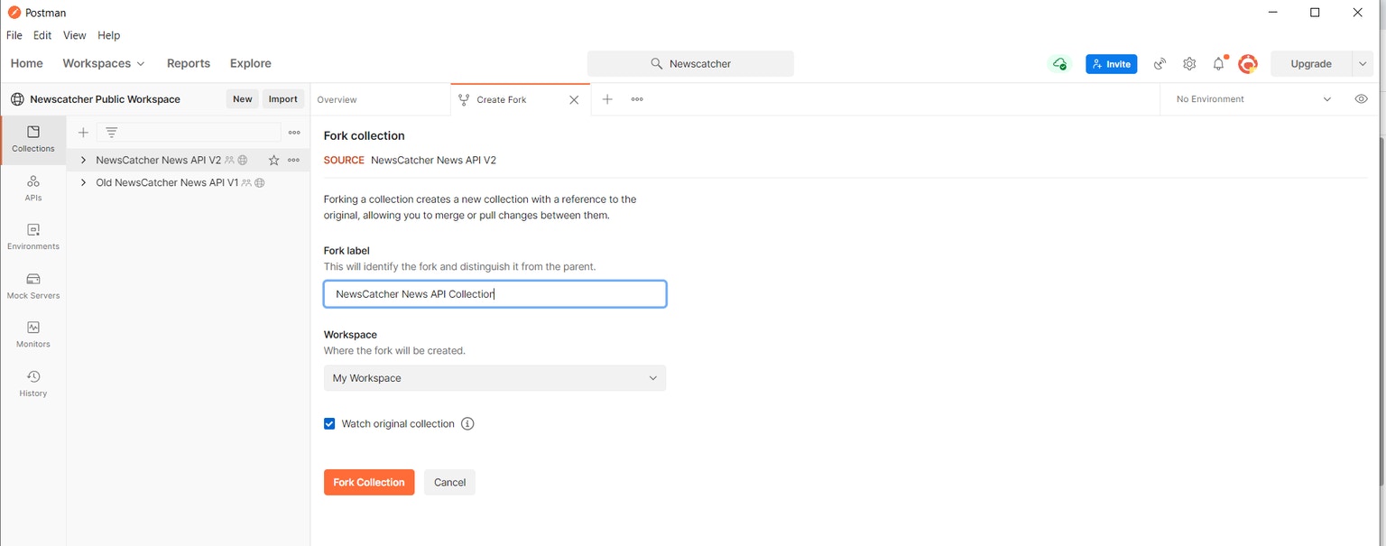 Step 3: Fork NewsCatcher News API V2 into your environment